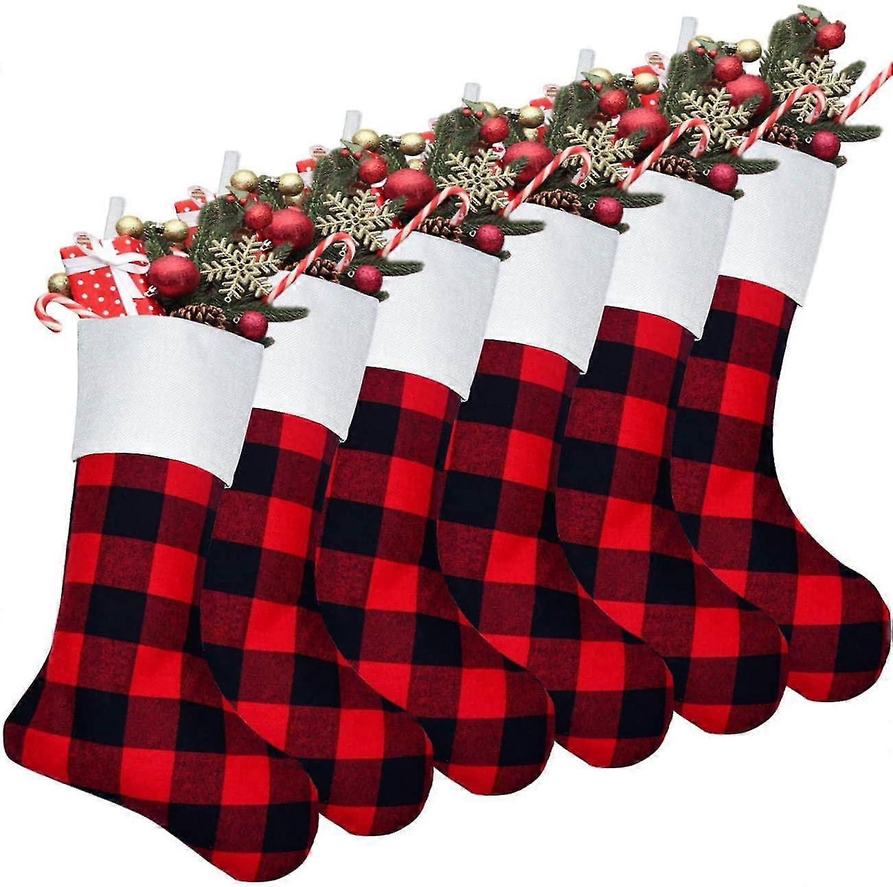 Color:Red and Blackp> p> p> Set of 6 Plaid Christmas Stockings Classic collection is great for Christmas holiday decorationp> Red and black buffalo plaid Christmas stocking classic and rustic traditional touch to your Xmas decorp> Merry Christmas: These stockings are great Christmas home decorations. Best Christmas decor to brighten your Christmas tree fireplace stairs wall doors and windows. Merry Christmas to you and your loverp> Large 17.3&quot Size: 17.3&quot tall cuff width 7.5 inch- a good large size there is plenty of room for candies chocolates gift cards small gifts etc. You and your lover definitely will have a happy Christmasp> Double Layers Design: Made of cotton fabric and linen double-layer designhand-made exquisite craftsmanship durable and long lastingp> Better to match with Plaid Christmas Tree Skirtp> p> Specifications:p> Material: Cotton Linenp> Size: 17.3 inchp> Color: Red blackp> Style: Classic Rusticp> Package: 6 * 17.3 inch Christmas Stockingsp> p> Wash Care Instructionsp> Hand wash best machine wash in a gentle cycle with a neutral detergent lay flat to dry don t bleach.p> Avoid soaking for a long time avoid prolonged exposure in the sun put it in the ventilated place to dry.p> Wrinkles can be easily ironed.p> Classic Buffalo Plaid Design: Red &amp black buffalo check pattern classic and rustic traditional touch to your Xmas decor. Plaid Christmas stockings will bring a warm strong holiday atmosphere to your family.li> Christmas Stocking Great Value: 6 Pack x 17.3 inches Christmas stockings. Super value set li> Personalized The Stockings: You can personalized the stockings by embroiderying name on the top wide cuff.li> High-quality Materials: Made of cotton fabric and linen double-layer design 100% hand-made exquisite craftsmanship durable and long lasting. When you get it you ll find it worth being possessed.li> Plaid Series: Better to match with Plaid Christmas Tree Skirt and Christmas Stockings with Plush Cuff buffalo plaid Christmas Table Runner and Christmas Placemats.li> ul>