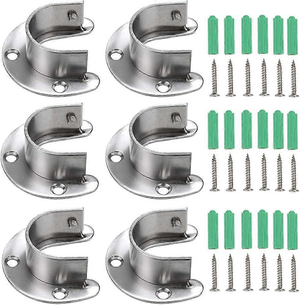 6 Packs Closet Rod End Supports 1-1/4" Diameter, U Shaped Stainless Steel Closet Pole Sockets Flange Rod Holder, Wall Mount Pipe Bracket with Screws