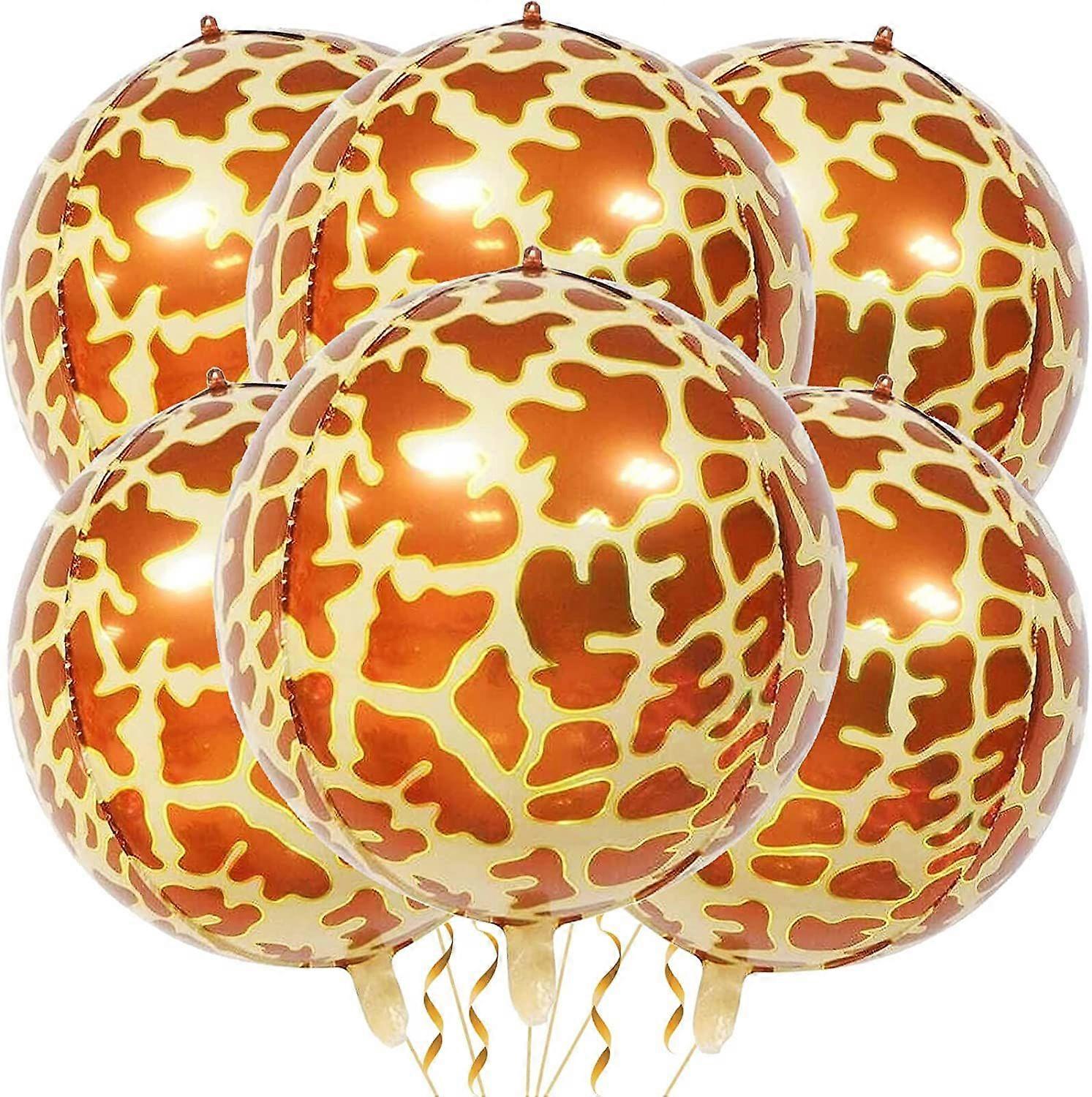 6 Pack Giant 22" 4D Animal Giraffe Pattern Ball Foil Balloon Helium Jungle Safari Giraffe Animal Metal Balloon Wildlife Print Balloon Animal Birthday