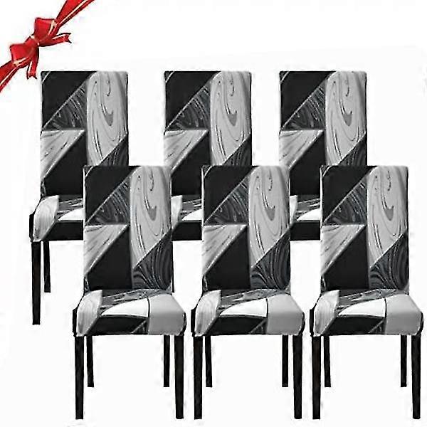 6-pack Stretch Dining Chair Slipcovers (Geometric Black, Set with