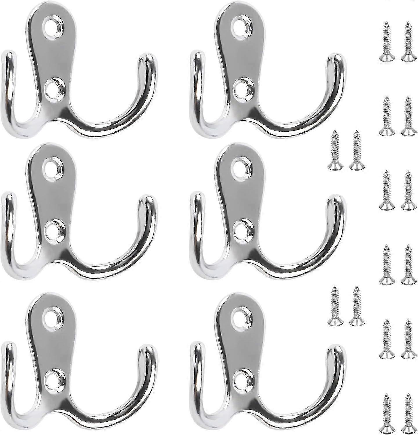 6 Pack Double Fork Coat Hooks Double Coat Door Hooks with 16 Pack Screw Chrome Wall Mounted Hooks for Hanging Hats Ties Clothes--