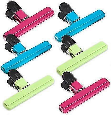 6 Pack Chip Bag Clips, 15cm*8.5cmLarge Size Assorted Colors Foods Snacks Bag Paper Clips, Plastic Heavy Duty Seal Grips blue green rose red