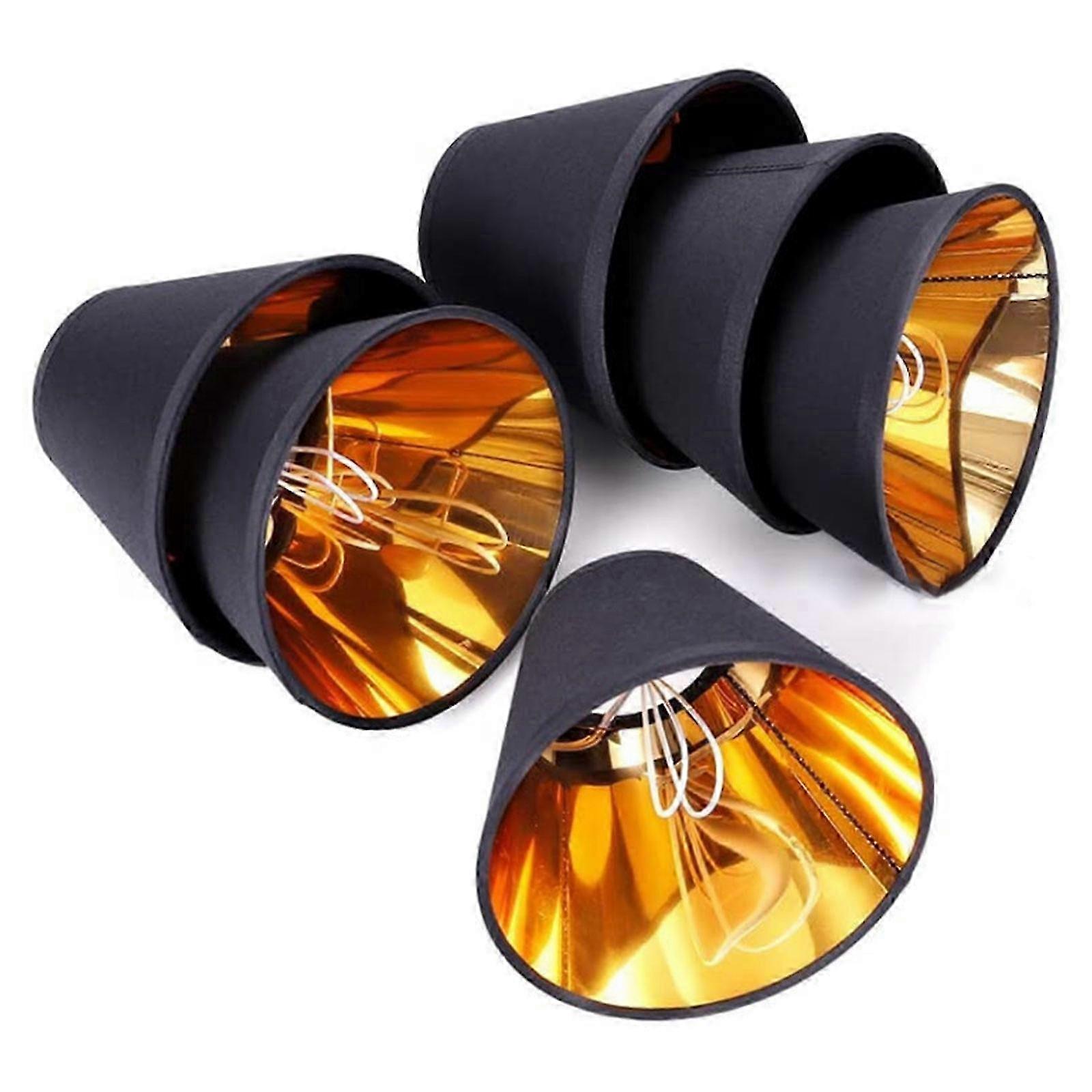 (6 Pack) Small Black And Gold Lamp Shades With E14 Socket For Table And Floor Lamps--