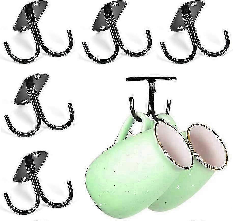 6 Pack Mug Holder, Rustic Under Cabinet Cup Organizer Rack With 12 Hooks For Mugs, Coffee Cups, Beer Glasses And Kitchen Utensils