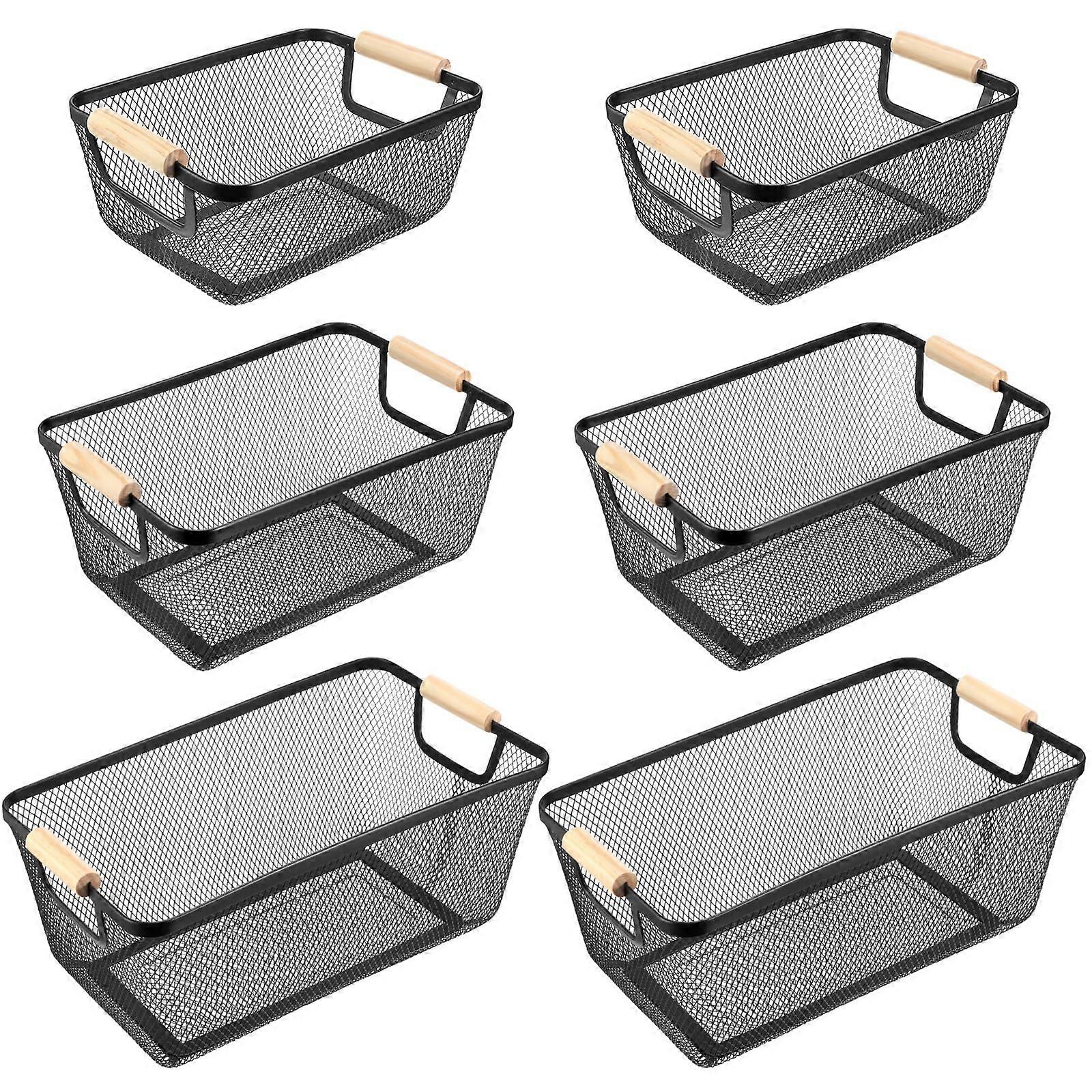 6 Pack Metal Wire Baskets Black Steel Mesh for Home Pet Toys Storage Rectangle Size