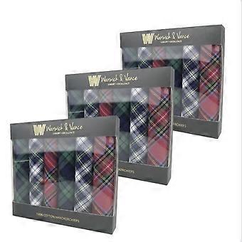 6 Pack Mens 100% Cotton Tartan Blue Red Green Handkerchiefs