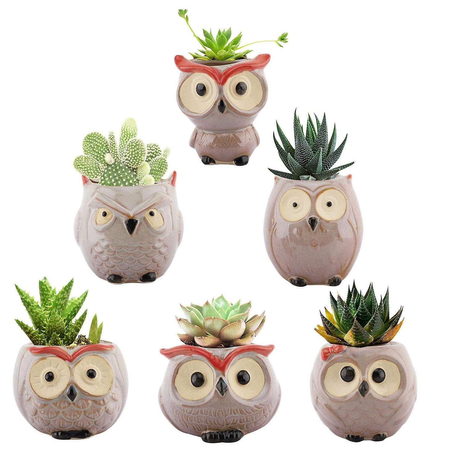 6 Pack Succulents Flower Pot Owl Pots for Desk Shelf Window Décor