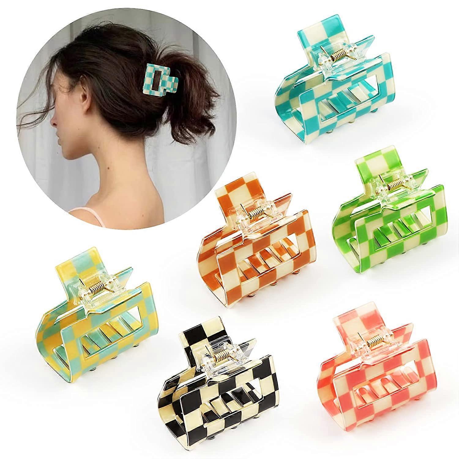 6 Pack Checkered Hair Claw Clips,Multicolored Square Medium Hair Clips, Non-Slip Claw Clips Hair Styling Accessories with Strong Hold for Women Girls
