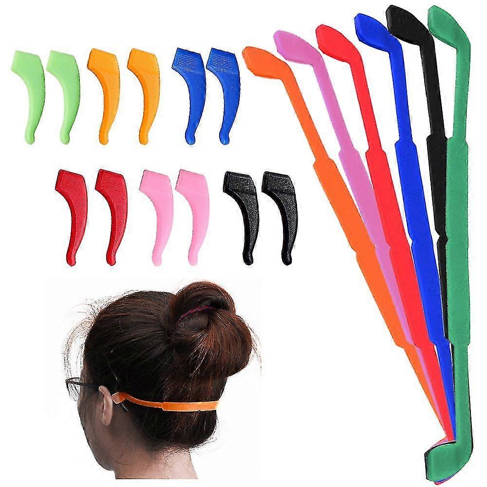 6-Pack Non-Slip Silicone Glasses Straps with 6 Pairs of Ear Clips, Kids Adult Sports Glasses Frames