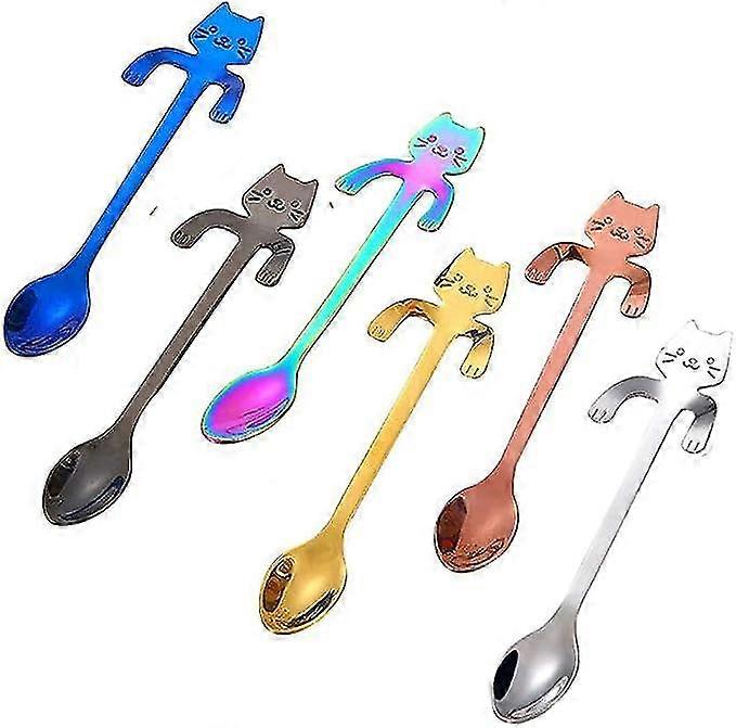 6 Pack Cat Spoon Coffee Tea Spoons (multicolor), Coffee Gifts For Men Stainless Steel Hanging Cup Teaspoon Mini Cute Kitty Stirring Spoon