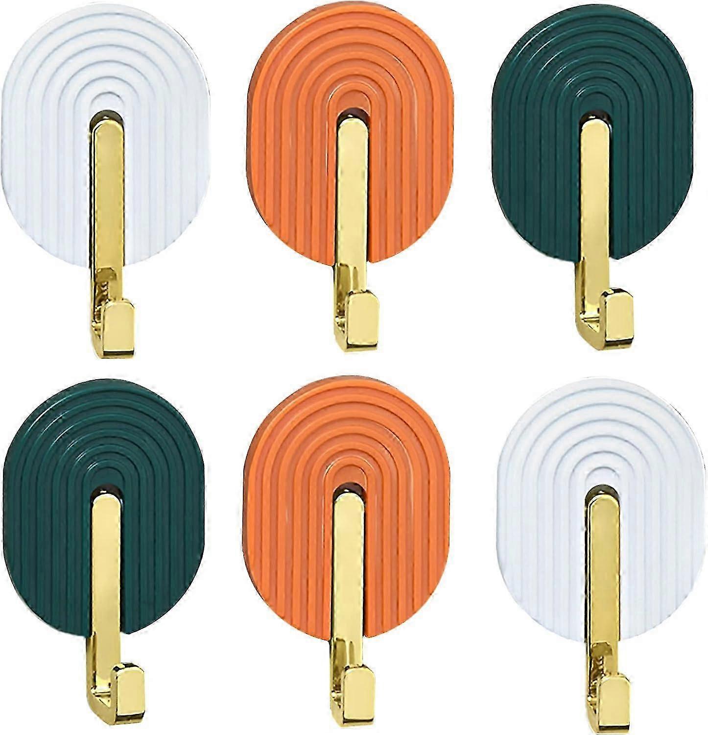 Unique Color Matching DesignAdhesive Hooks are made of premium ABS Plastic, strong and sturdy. Combine gold with other colors for a more elegant and stylish look Upgraded Bend-Hook DesignStraight load-bearing part of Wall hanger has a recessed groove, which can better fix the clothes/stuff. Single coat hanger with extended long straight bar, ending with perfect bending, curved-hook is taller and larger, better for hanging Waterproof and OilproofThe sticky hook has excellent water and oil resistance. Even when used in the shower or kitchen, the wall hook will not fall off. Adhesion and sealing force are not affected. Adhesive hooks are widely used on various surfaces, such as brick, glass, metal, wooden doors, tiles, walls, etc. Easy Installation and Remove- These Wall hangers without nails are easy to install without any hassle. No need to drill. Before use, you can just clean the surface, paste it and press firmly. After 24 hours make sure the sticking is tight and fixed at that place then start to use. When remove, use a hair dryer to heat the melted glue first, then wall hangers without nails can be easily removed. Package IncludeThe package comes with 6pcs adhesive wall hooks, which can meet your different needs. Adhesive hooks help to keep your home clean and tidy and save space.
