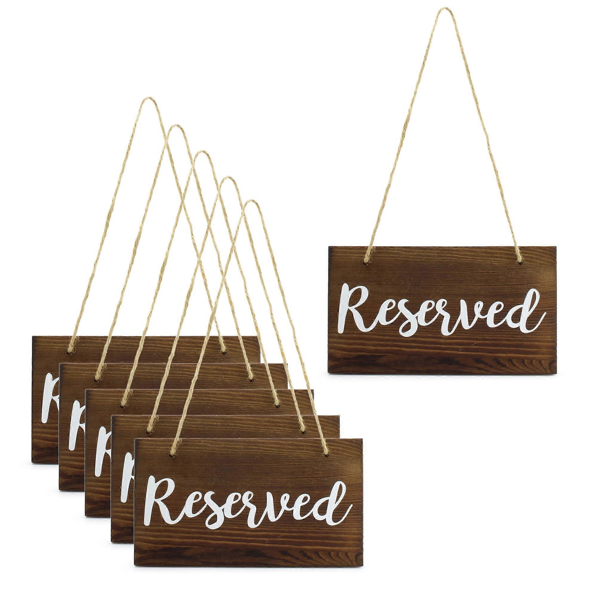 6 Pack Rustic Wood Hanging Reserved Signs for Weddings, Events, Outdoor Decor, Vintage Style