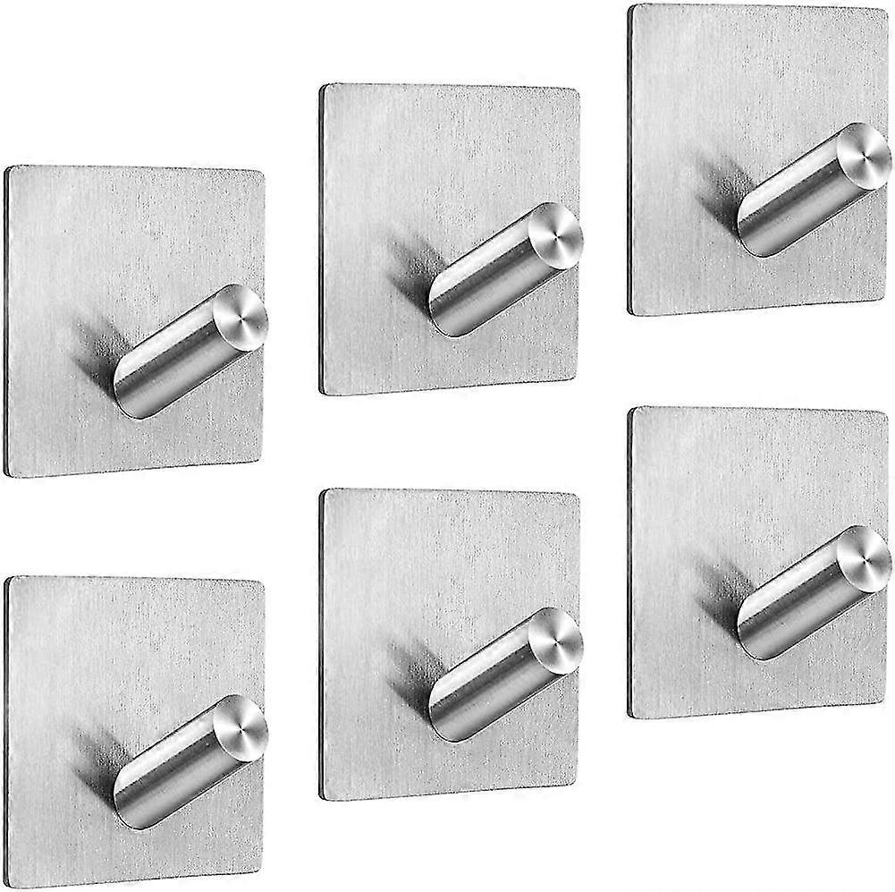 6 Pack Self Adhesive Hooks, Stainless Steel Adhesive Door Hooks, Coat Hooks