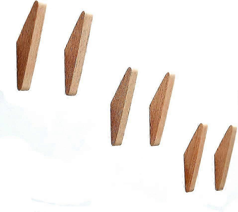 6 Pack Rustic Oak Wooden Wall Hooks for Clothes & Hats (Minimalist)