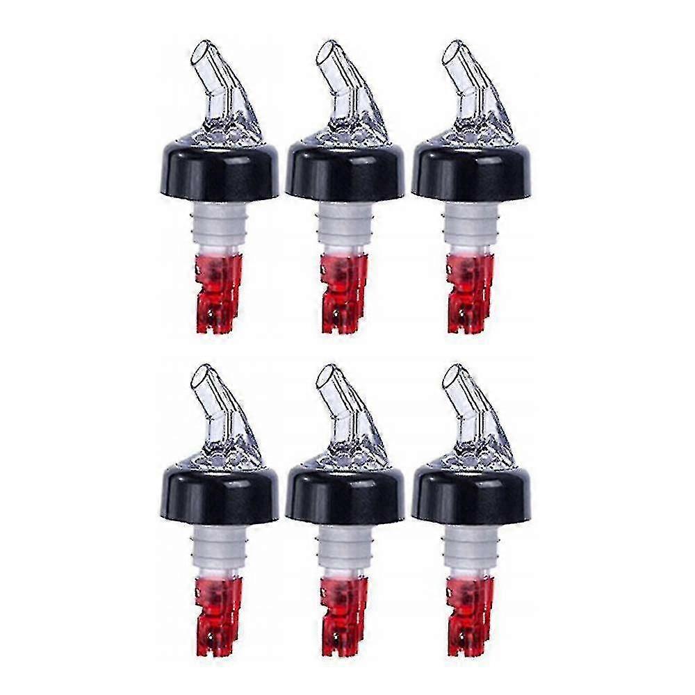 6-Pack 1 Oz Clear Liquor Bottle Pourers with Red Tip & Black Collar