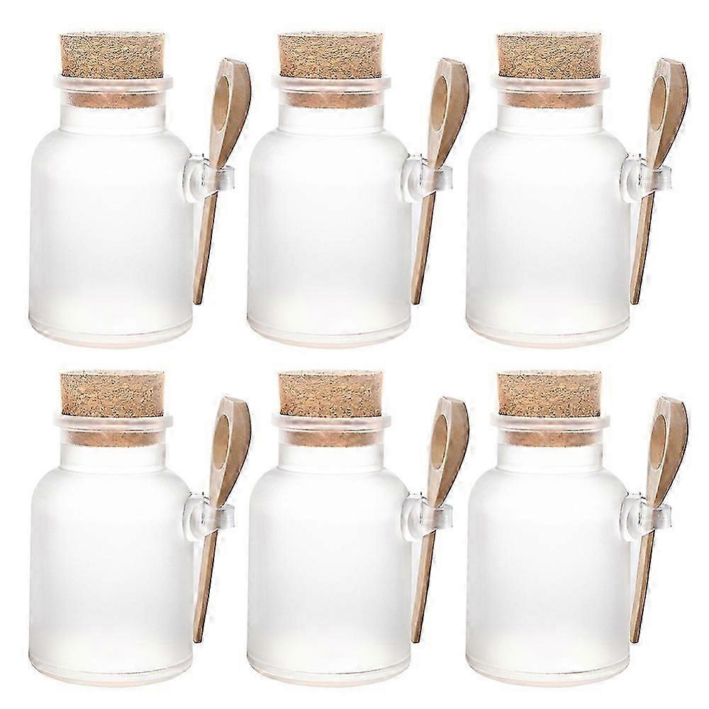 6 Pack 100ml Matte Plastic Bath Salt Bottle Jar Empty Kitchen Storage Containers Jars with Cork and Spoon 1PC Label for Spices Salt Body Care