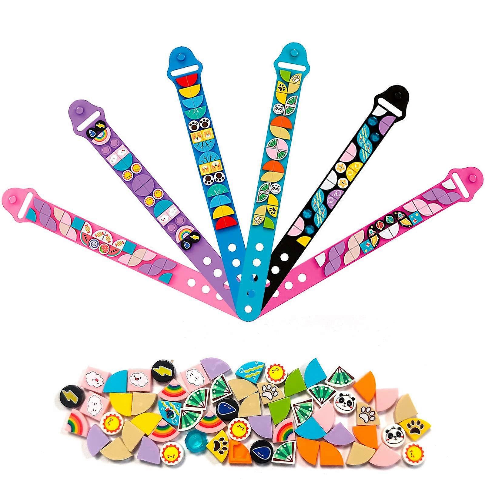 6 Themes: The DIY DOTS set contains 6 different themed bracelets, namely: NO.6501N-Animal Series, NO.6502N-Ocean Series, NO.6503N-Meteorological Series, NO.6504N-Candy Series, NO.6505N-Cosmos Series, NO.6506N-Animal Series DIY Bracelet Craft Set: Each package has 1 band and 29 pieces bricks, make your own bracelet, send it to your friends as a gift, share happiness and promote friendship Chic Design: Designed with cute sloth pattern, they look very cute. It can be worn directly on the wrist, which is practical and convenient. Suitable for adults and children as they are adjustable, suitable for school, holiday and travel, outdoor activities Educational Toys: Let kids take their own accessorising to new levels and share the creative experience with friends and family with this Bracelet jewellery set Novelty Gifts: Traditional toys only make children happy and fun, but the DIY toys improve children's functioning and enhance their imagination