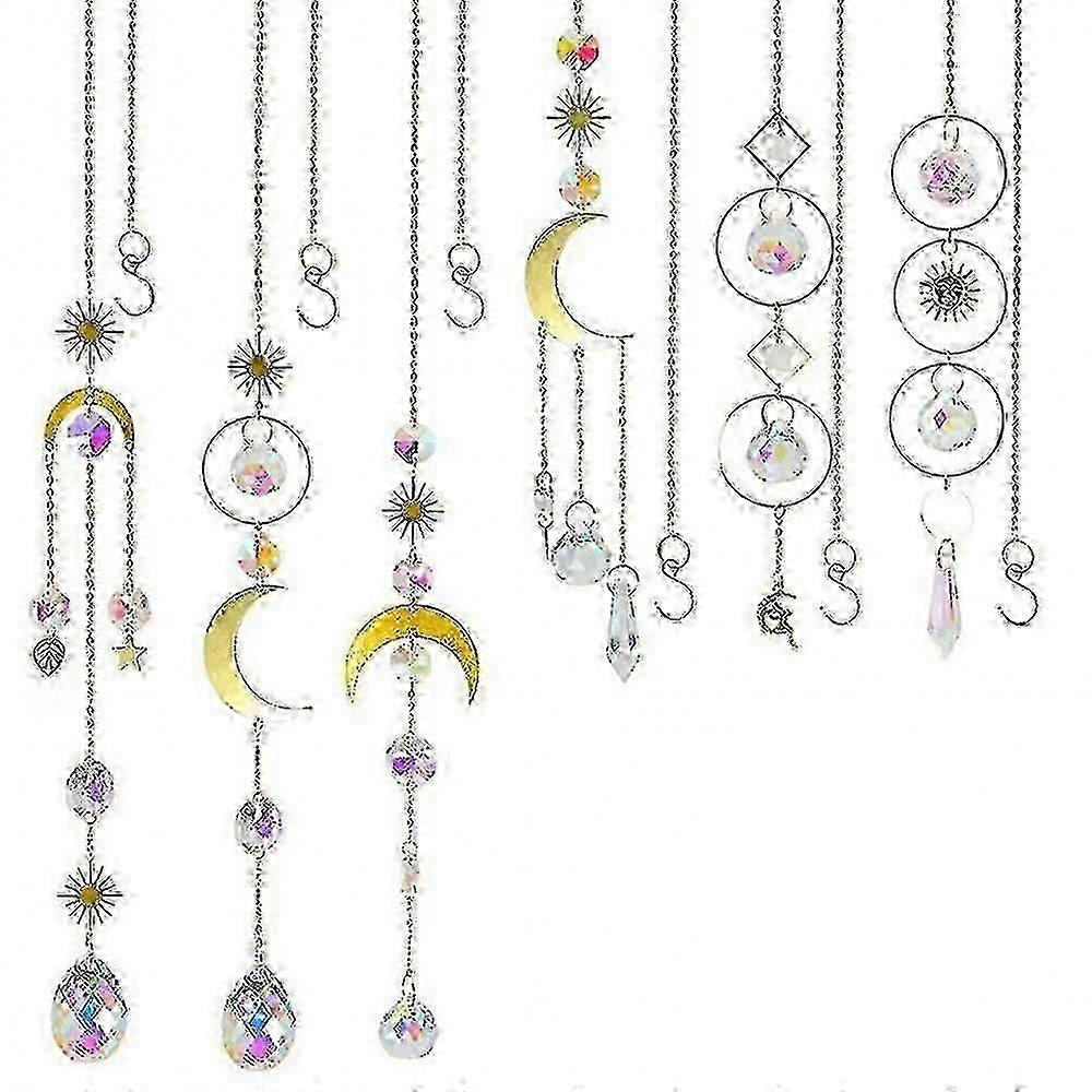 6 Pieces Colorful Crystal Sun Catcher Hanging Sun Catcher With Chain Pendant Decoration