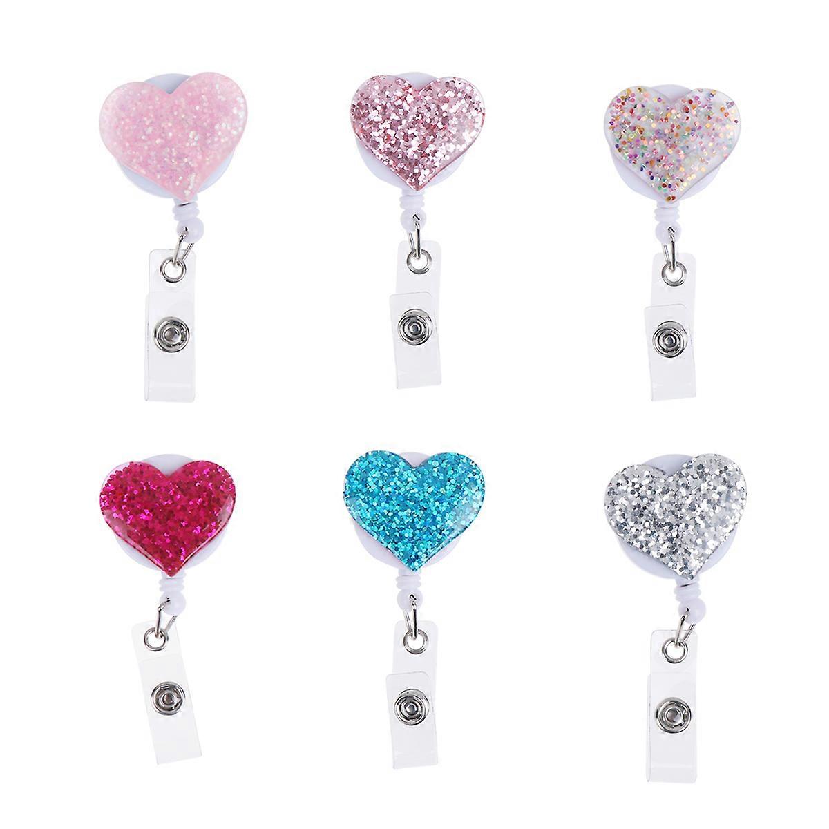 6pcs Colorful Nurse Badge Holder Creative Rhinestone Heart Shape Nurses Retractable ID Badge Reel Clips