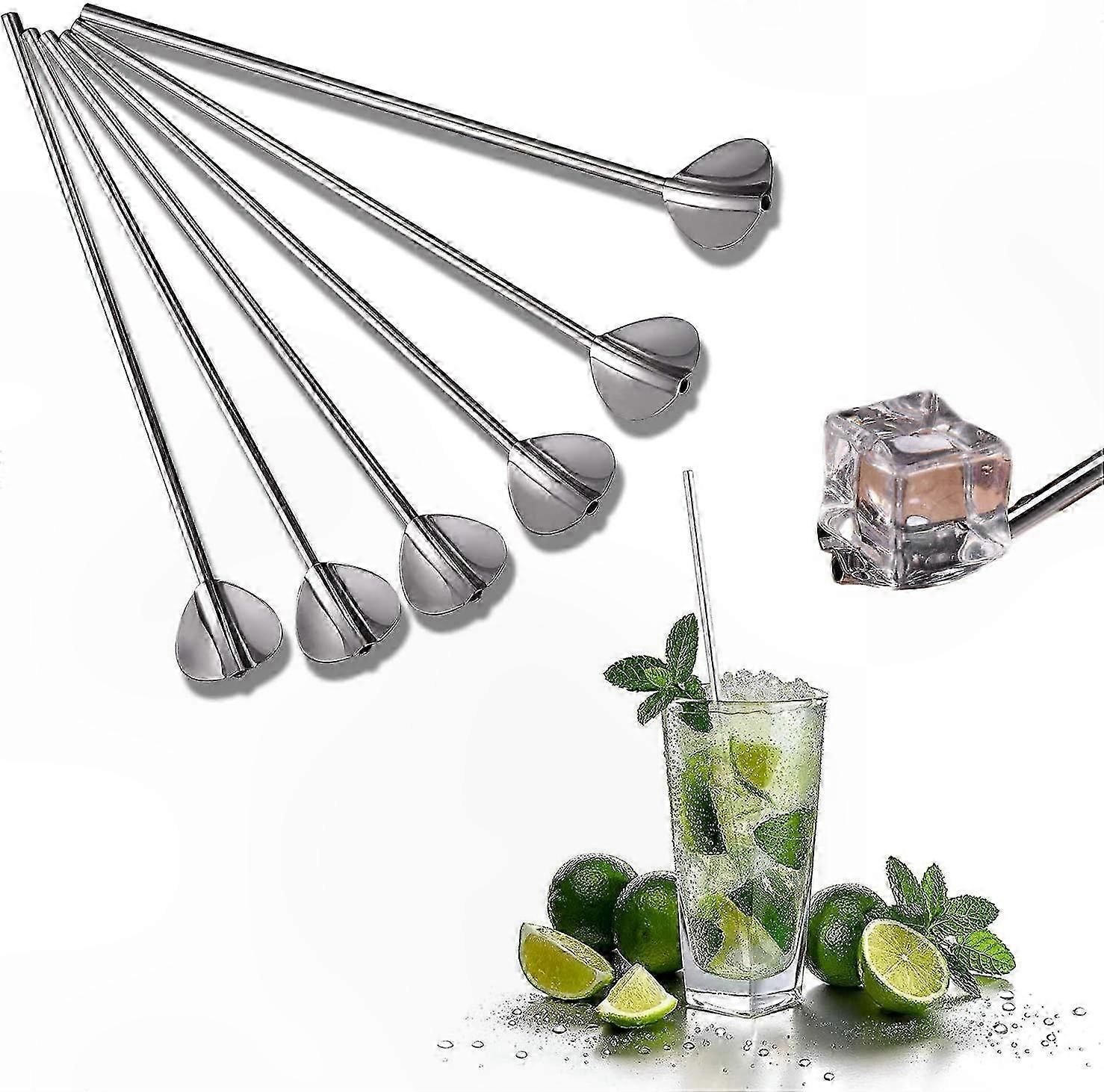6-Piece Stainless Steel Straw Spoons - Reusable Metal Drinkware Accessories for Cocktails, Coffee, and Beverages