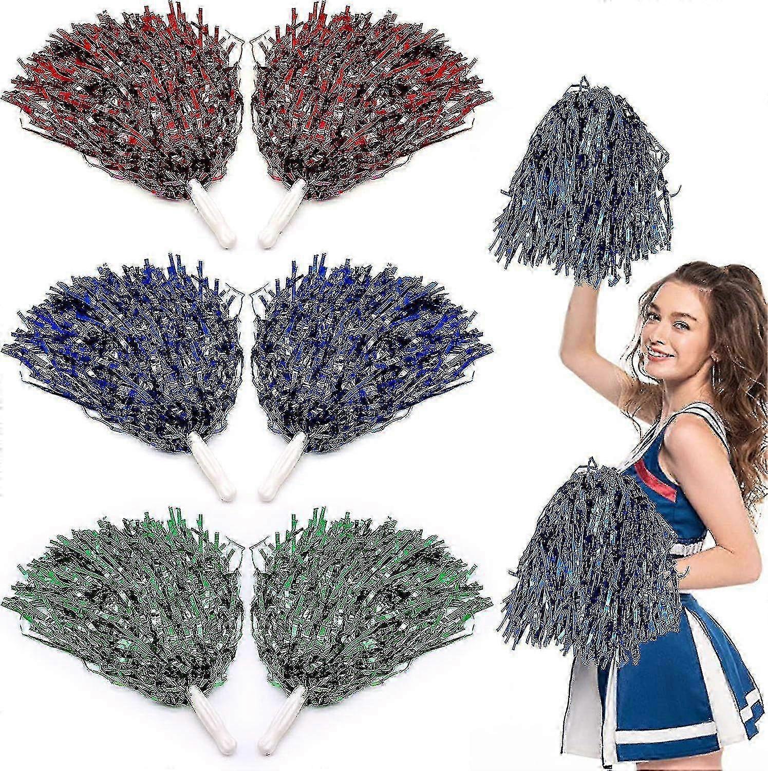 6 Pieces Cheerleading Pompoms Multicolor Colored Cheerleader Pompoms With Handle For Sports Matches, Stage Performance, Holiday Party