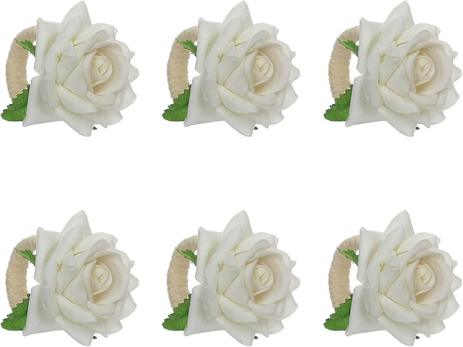 6 Pieces Napkin Rings, Artificial Flower Napkin Rings Rose Napkin Holder Ring Deco For Wedding Banquet Birthday Party
