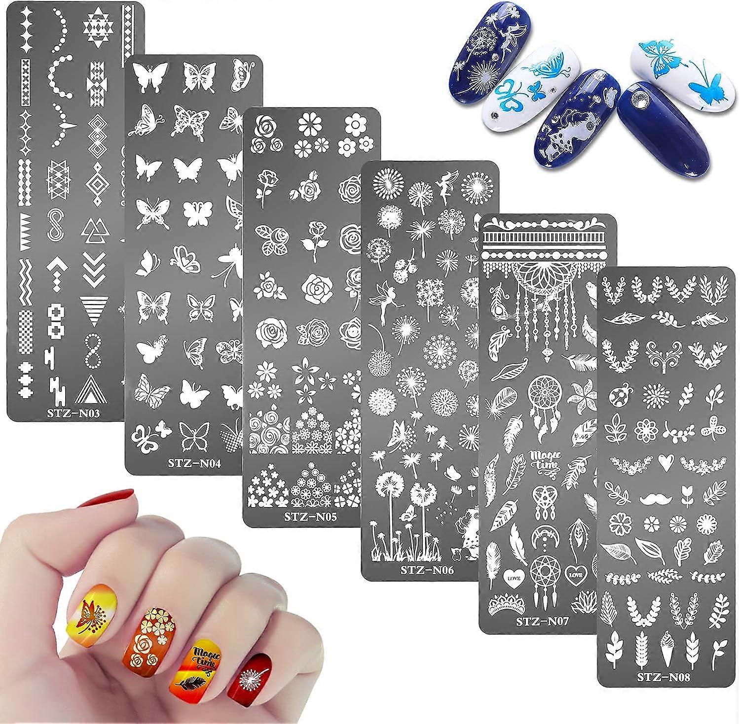 6 Pieces Nail Stamping Plate, Nail Stamping Plate, Butterfly Flowers Nail Stamper for Nail Art Design Manicure