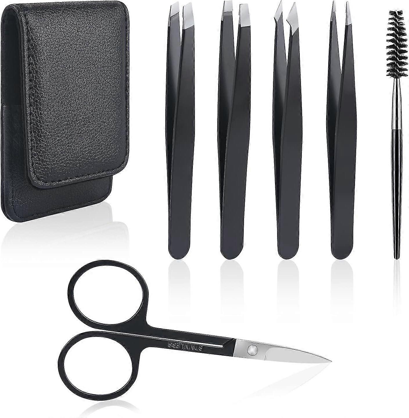 6pcs Tweezers Kit, Professional Tweezers, Stainless Steel Scissors For Eyebrow, Facial Hair And Ingrown Hair Removal