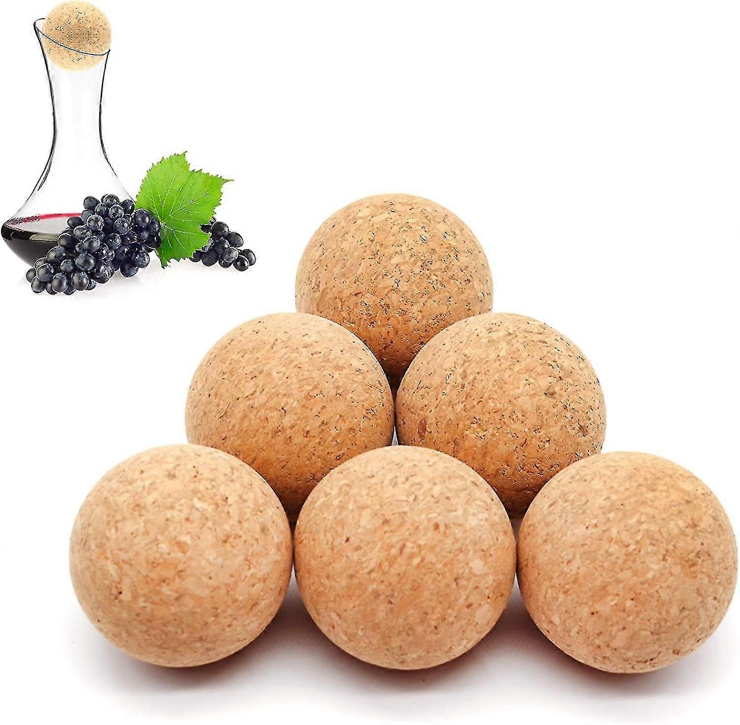 6 Pieces Wine Cork Ball, Wooden Cork Ball Stopper For Wine Decanter Carafe Bottle Replacement, 2.4 Inch/ 6.1 Cm