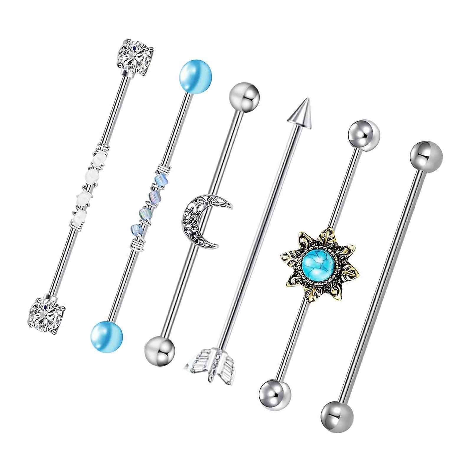 6 Pieces Industrial Barbell Earrings Stylish Stainless Steel for Women Men