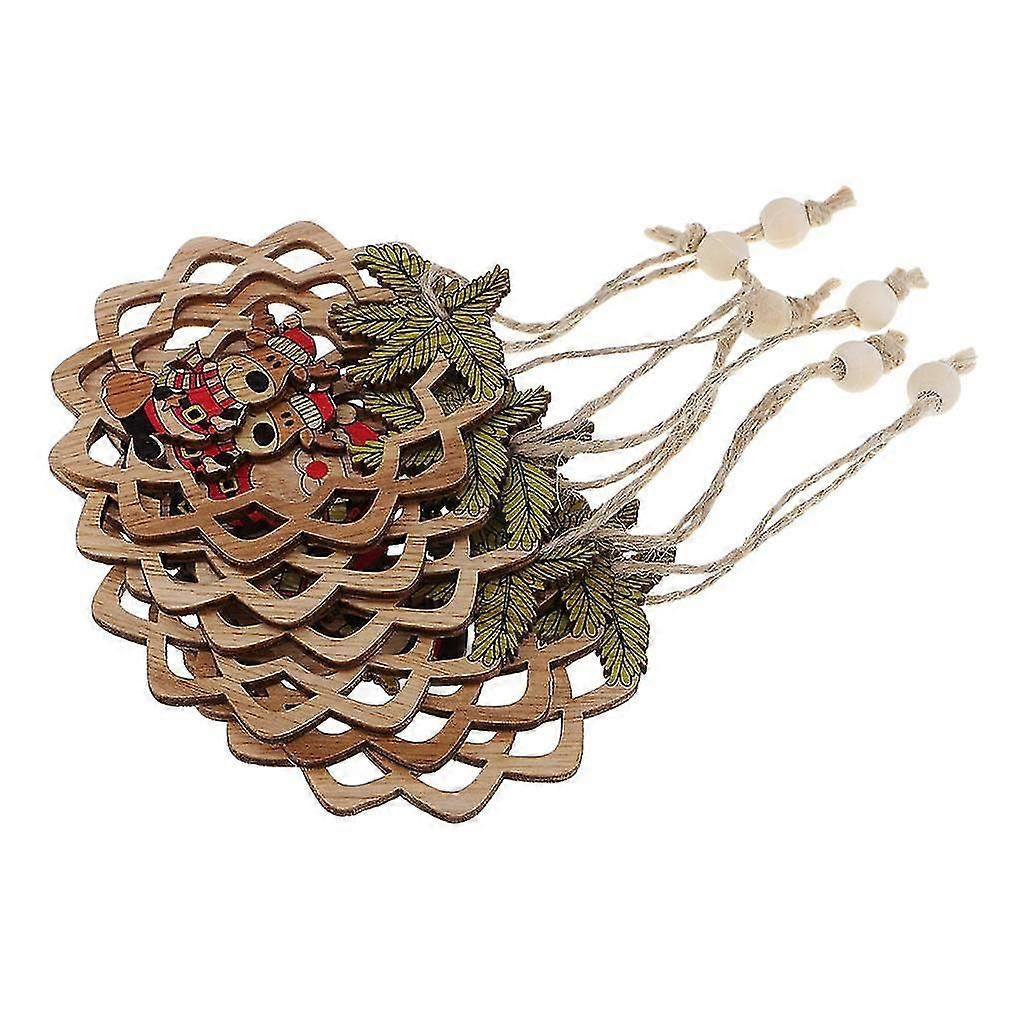 6 Pieces Wooden Christmas Tree Decorations Xmas Hanging Ornaments Wood Craft
