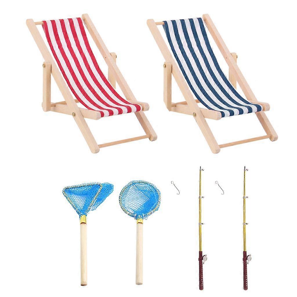 6 Pieces Fishing Sets Chairs Miniatures for 1:12 Dollhouse Fairy Garden Realistic Accessories Model Collections