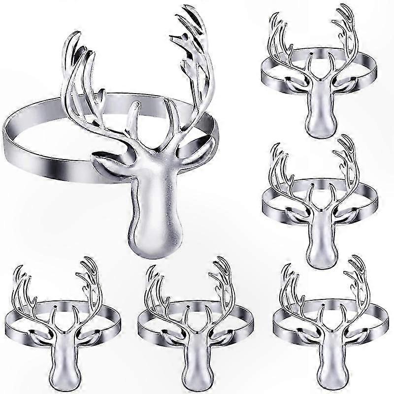 6 Pieces Deer Napkin Rings, Christmas Metal Napkin Ring Holders for Christmas, Wedding, Holiday Parties,(Silver)