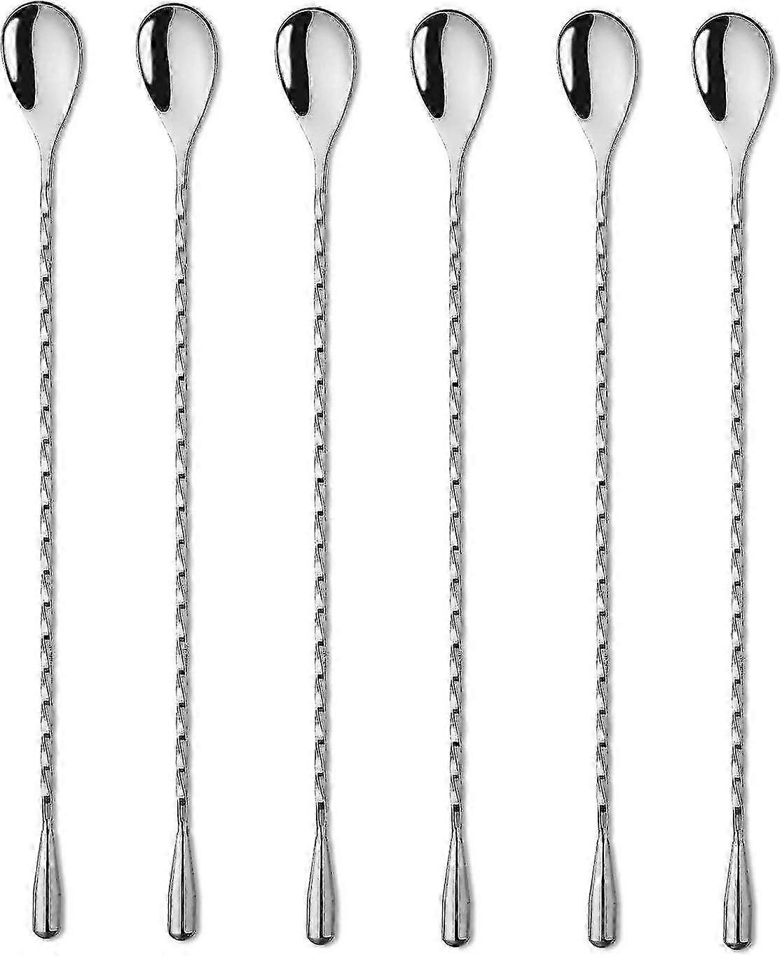 6Pieces 12 Inch Bar Mixing Spoon Cocktail Spoon Stainless Steel Long Spoon With Spiral Pattern--