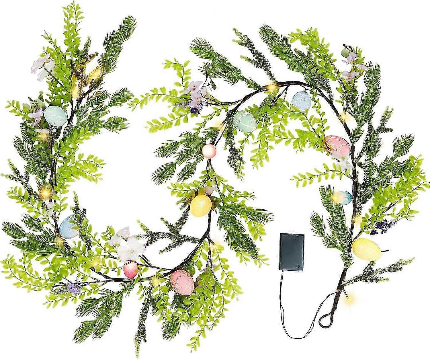 6ft Glow Easter Wreath, Artificial Wreath with Easter Eggs, 20 LED Lights Spring Wreath