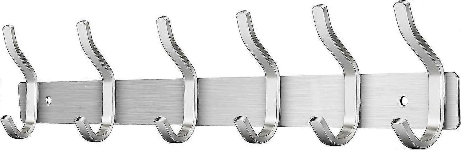 6-Hook Wall Mounted Coat Rack, Stainless Steel Wall Mounted Coat Rack, Towel Coat Rack Hook (Silver)