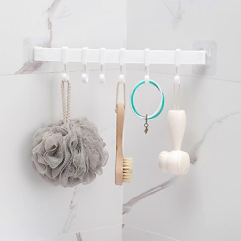 6 Hook Adjustable Storage Rack - Versatile Kitchen & Bathroom Organizer - Space-Saving Door Holder for Towels, Keys, More - Durable & Easy Install