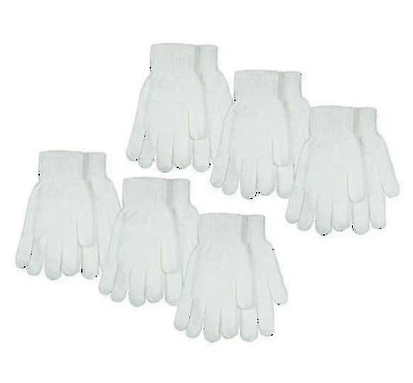 6 Pairs Of Winter Gloves Classic Knitted Warm Gloves Solid White Cool