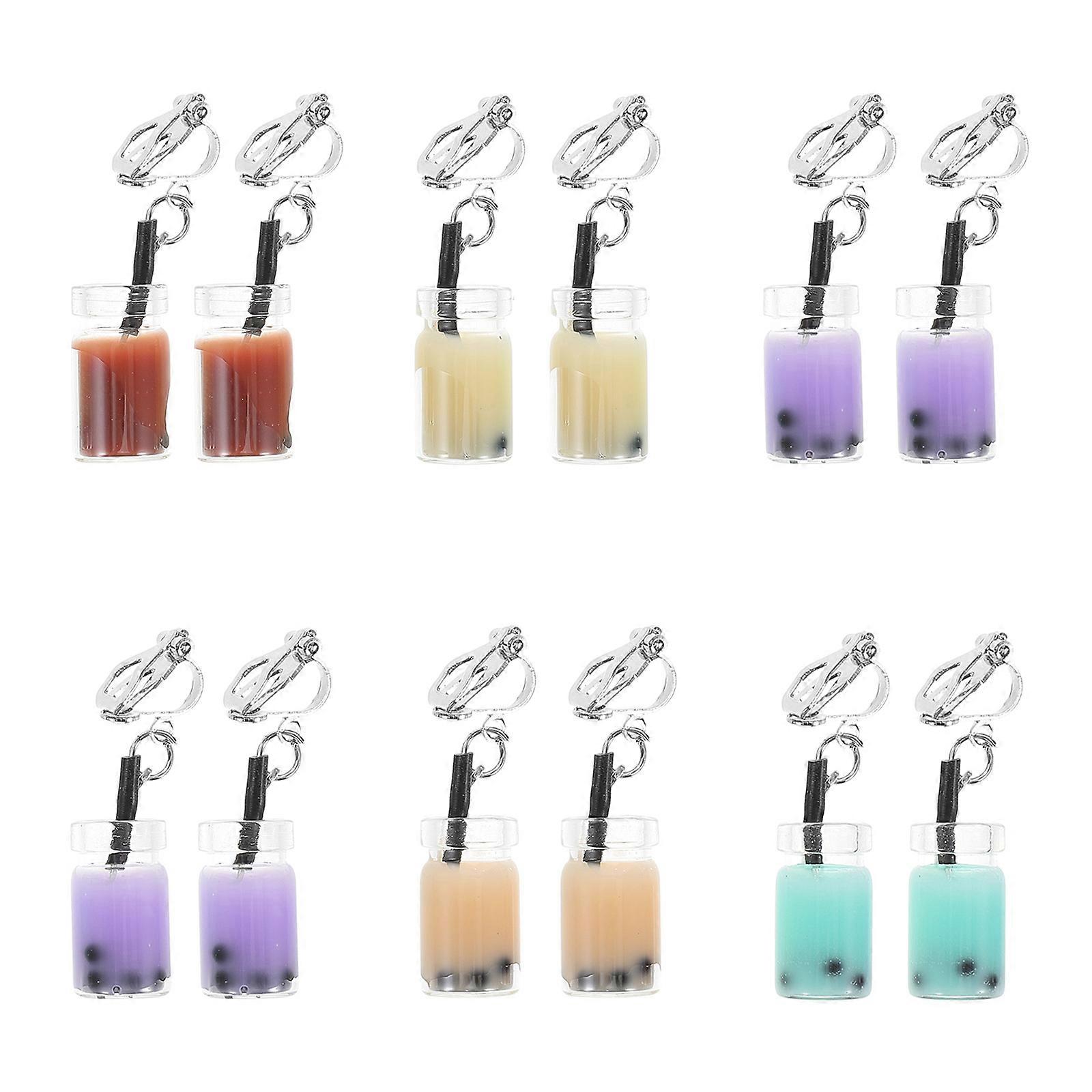 6 Pairs Creative Pearl Milk Tea Dangle Earrings Mixed Color Ear Jewelry