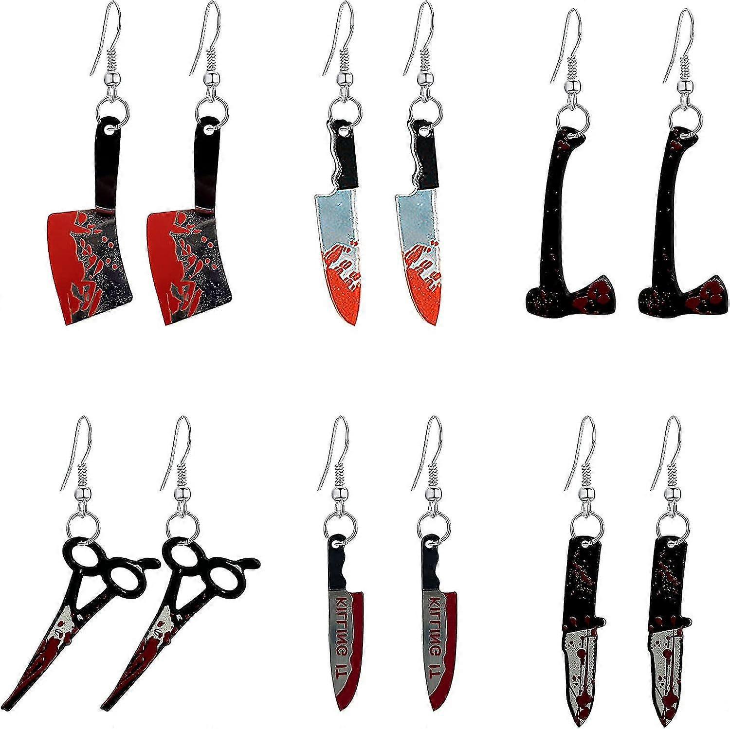 6 Pairs Punk Knife Dagger Drop Dangle Earring Set Gothic Acrylic Bloody Printed Knife Earring For Women Girl Teen Hip Hop Halloween Party Jewelry With