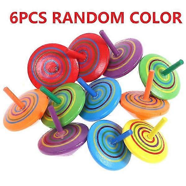 6 pcs Colorful Gyro Wooden Toys - Spinning top toys for kids, classic and fun.