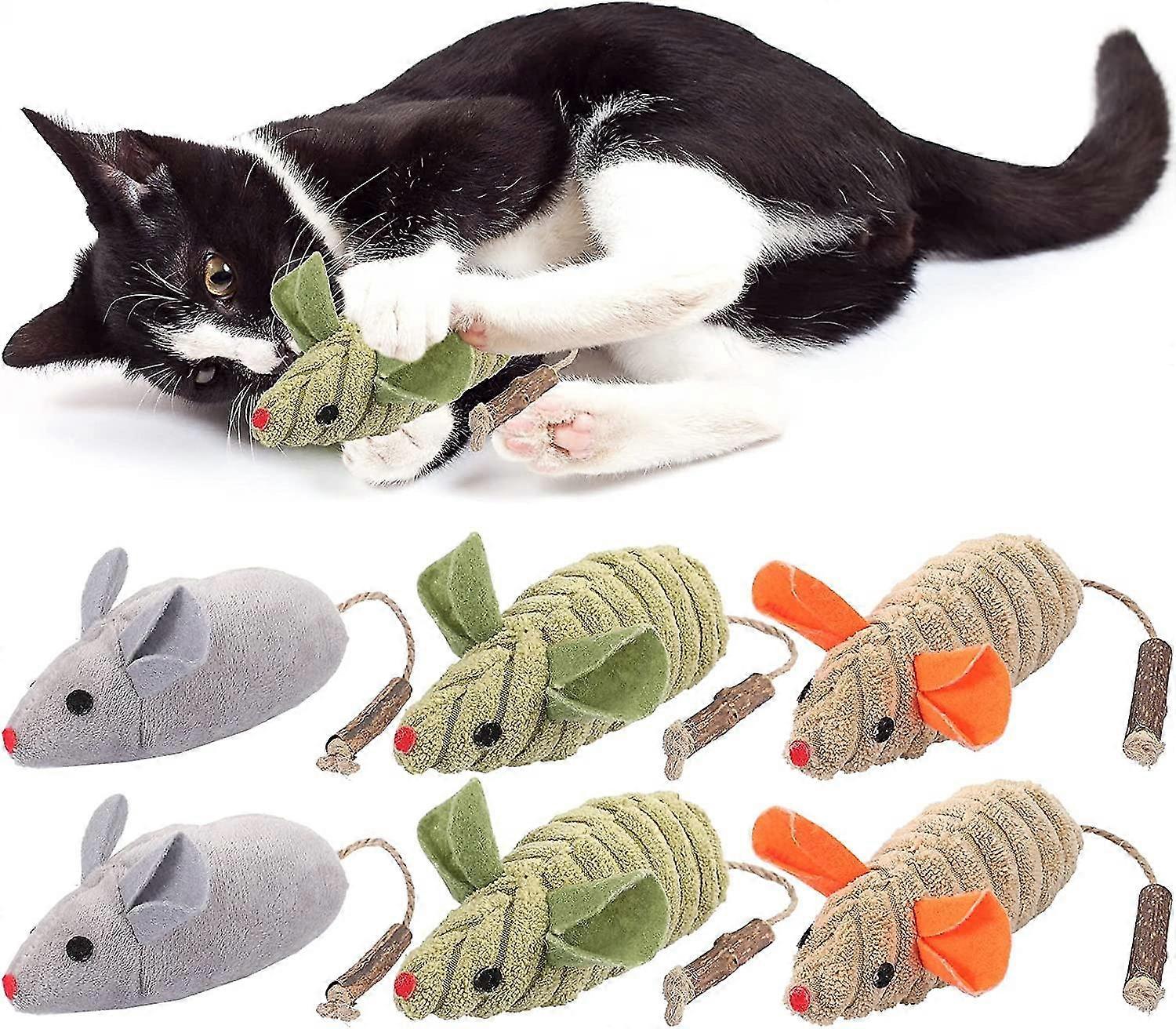 6 Pcs Catnip Mice Toys with Silvervine, Plush Interactive Chew Toys for Cats & Kittens, 3 Colors