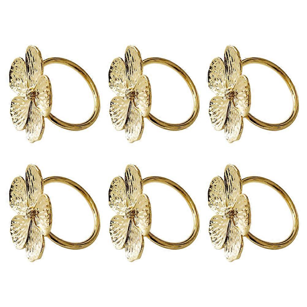 6pcs Gold Metal Napkin Rings, Elegant Flower Design for Weddings, Parties, and Special Occasions, Sturdy Lightweight Table Decor