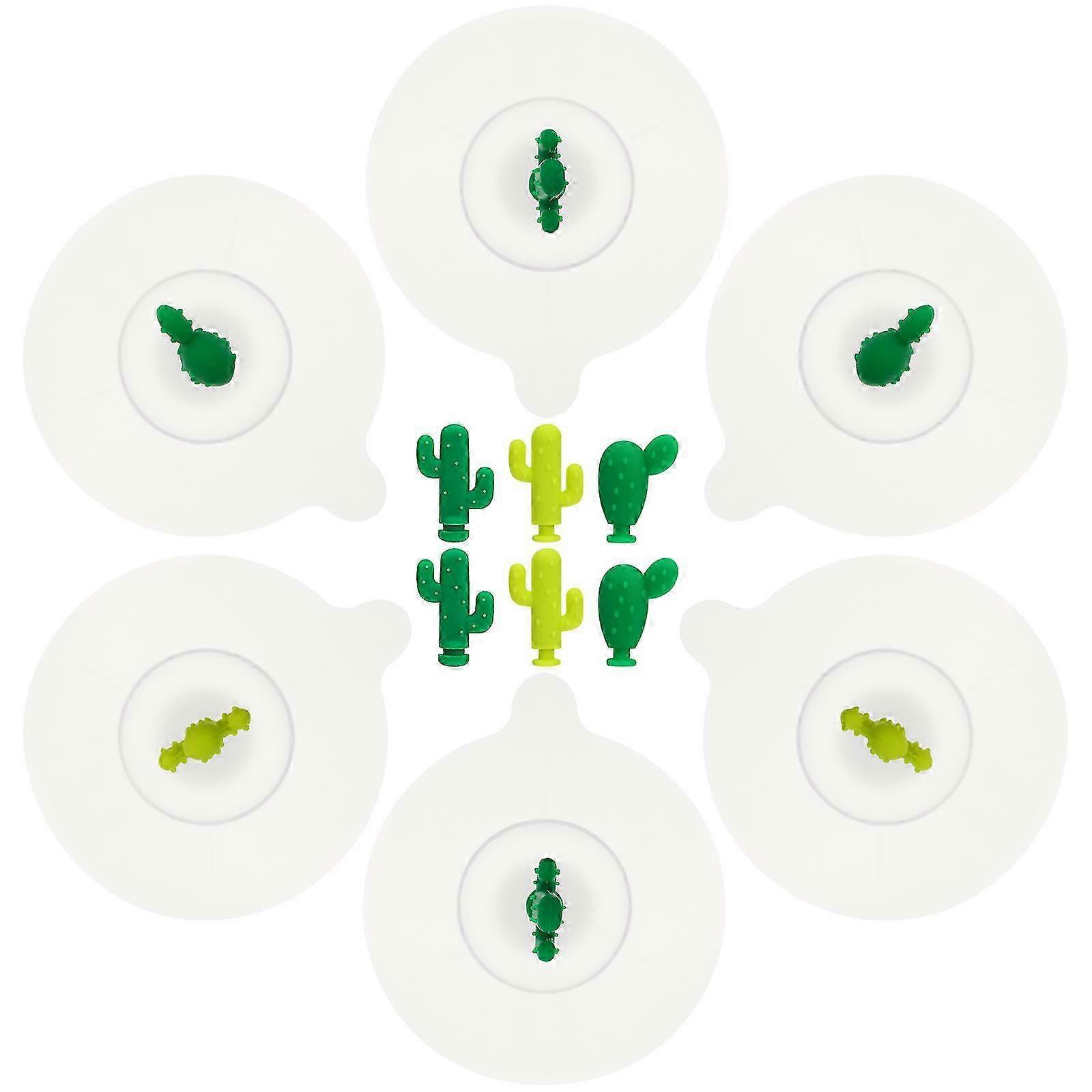 6 Pcs Silicone Cup Lids, Leak-Proof Dustproof Cactus Suction Mug Covers