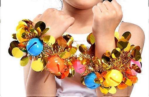 6pcs Cheerleading Hand Flower: Cheerleading Sequin Hand Flower With Bells - Kids Kindergarten Dance Wrist Flower Performance Props For Stage Sports Ev
