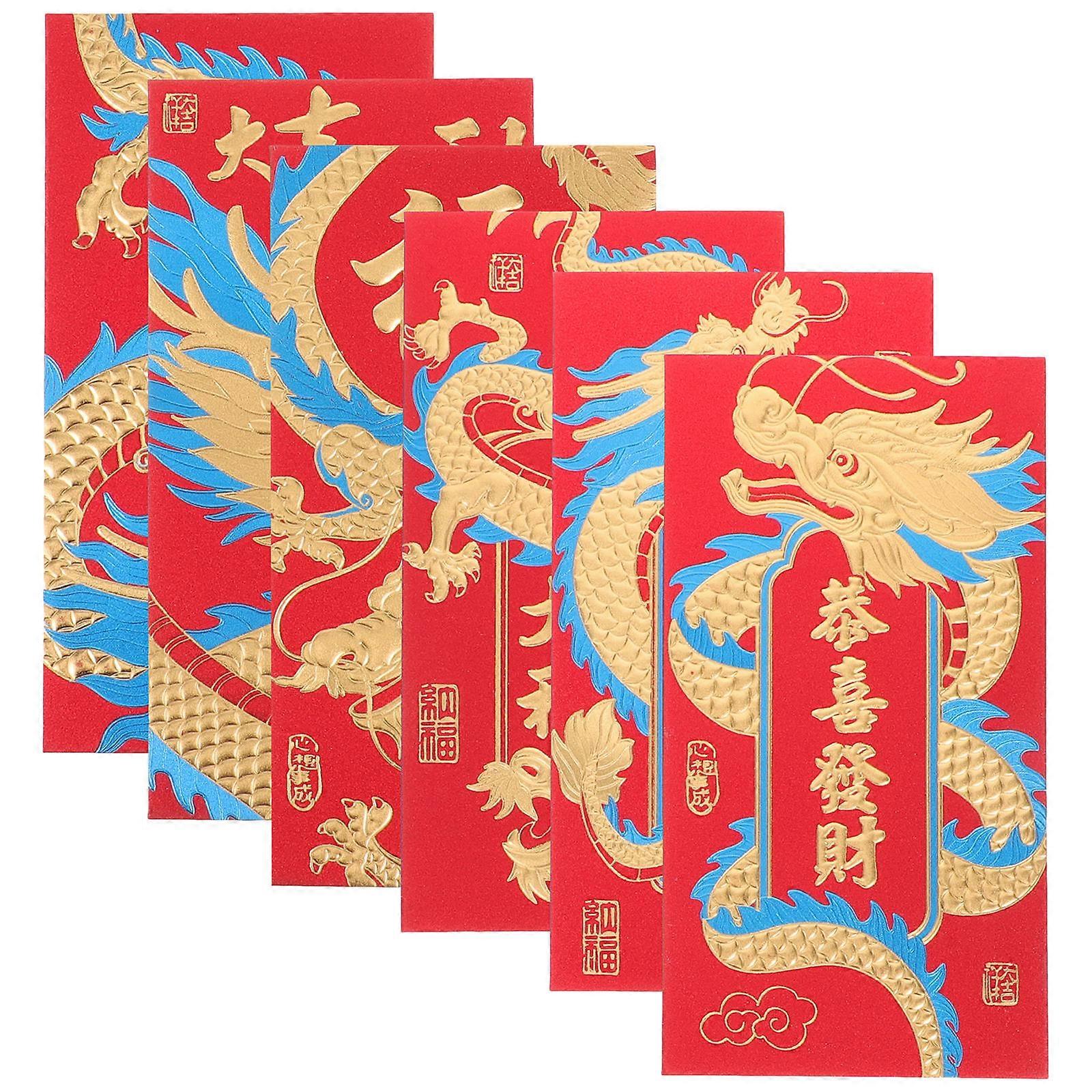6pcs Dragon Year Red Envelopes Traditional Chinese Blessing Pouches Sturdy Money Packets for Holiday Parties Adorable Dragon Design