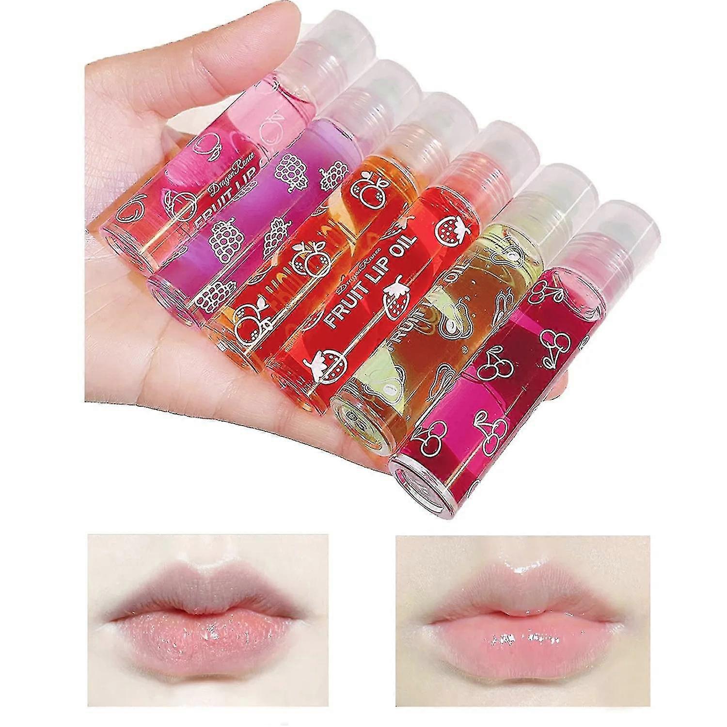 6pcs Fruity Flavors Rolling Ball Lip Oil Set,long Lasting Moisturizing Lip Balm,lip Oil Gloss Liquid Lipstick For Lip Care