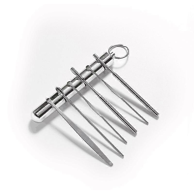 6 Pcs Portable Earwax Removal Kit Products, Stainless Steel Ear Wax Remover Tool,360massage Ear Pick Cleaning Care Kits, Keychain Ear Spoon In Sealed