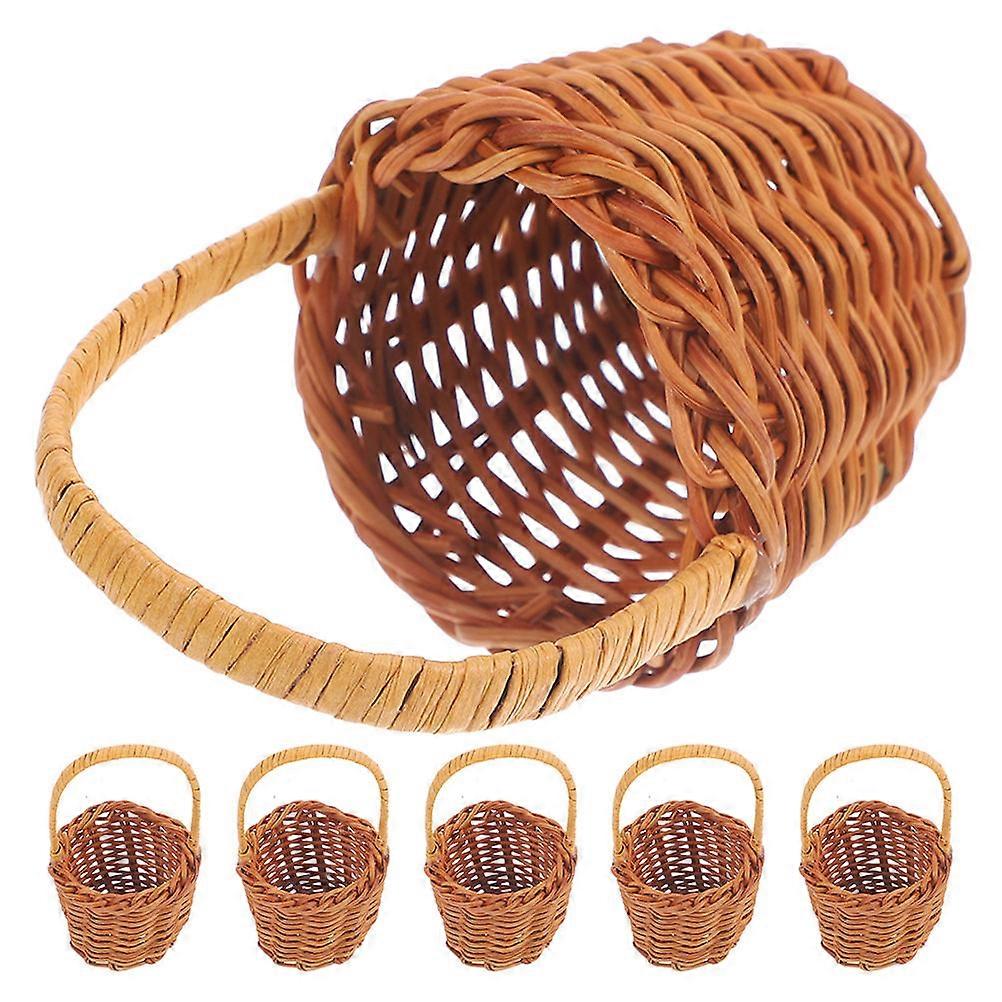 6pcs Mini Rattan Woven Baskets for Home Decor, Dollhouse, Wedding & Party – Natural Craft Storage & Floral Arrangement Props