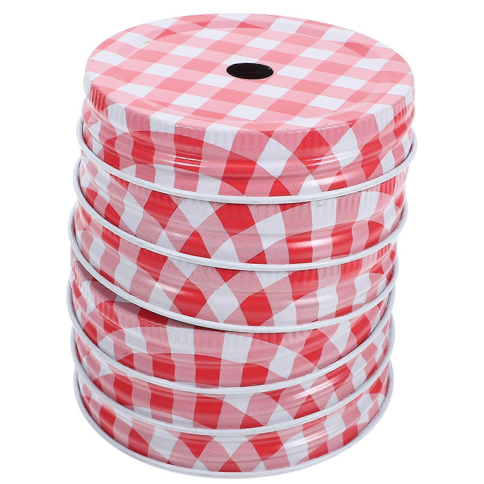 6pcs Mason Jar Straw Lid Replacement Canning Jar Wide Mouth Metal Lid Accessory With Straw Hole For Drinking And Storage